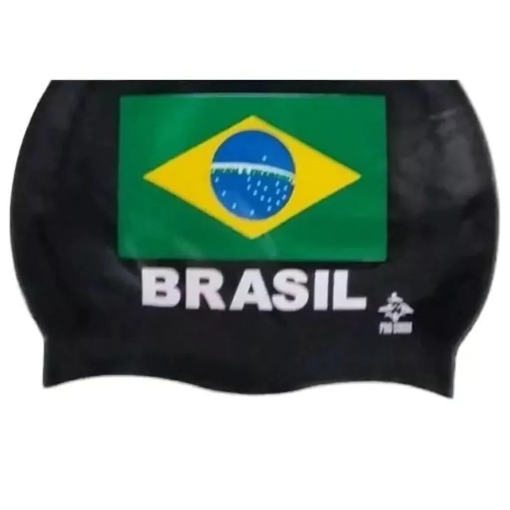 Touca 100% em silicone estampada com a Bandeira do Brasil, disponível nas cores: Preta, Branca, Azul Royal, Amarela e Verde.